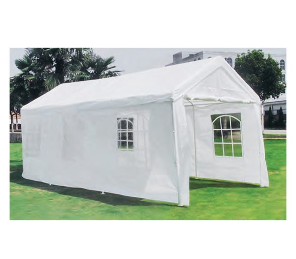 Great for any occasion, features a Heavy-Duty 1-3/8″ Diameter Steel Frame and 12 Mil. Water proof polyethylene covers, including front and back panel doors and side panels with elegant windows(by option). The front door includes a zipper door for easy access. All panels included are independent and can be attached at the users discretion.