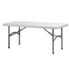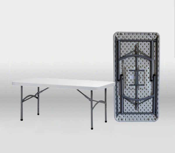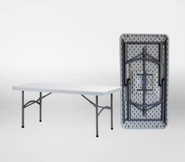Folding table with powder-coated steel structure and high density polyethylene table top. Sliding right to lock the legs in position when in use. Easy and secure. Continuous digitally welded joints. Precise and indestructible. Powder-coated steel. Shock-proof and damp-proof. Metal profiles of a thickness designed to withstand extreme loads.