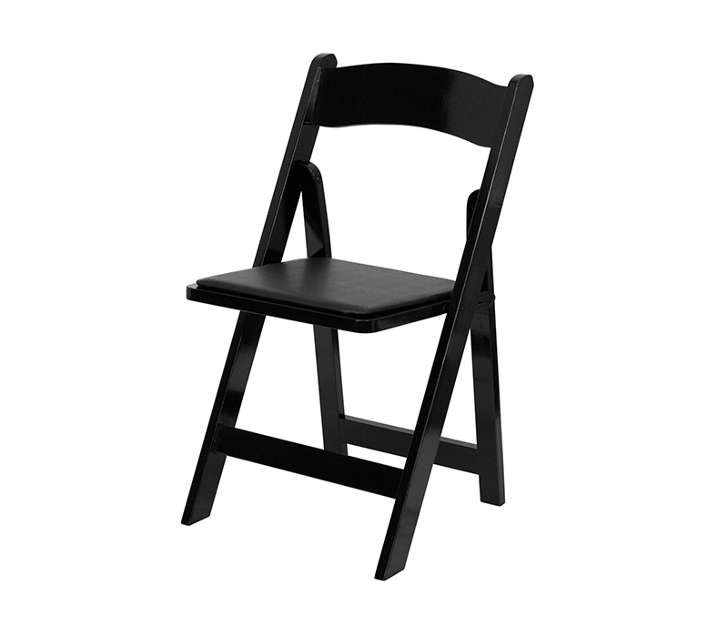 Frame: Constructed of solid hardwood. Seat: Sofa Foam Padded Seat with a washable vinyl locked mechanism. Our wood folding chair can be stocked over 30 chairs high. Custom color available.