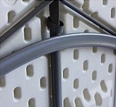 Folding table with powder-coated steel structure and high density polyethylene table top. Sliding right to lock the legs in position when in use. Easy and secure. Continuous digitally welded joints. Precise and indestructible. Powder-coated steel. Shock-proof and damp-proof. Metal profiles of a thickness designed to withstand extreme loads.