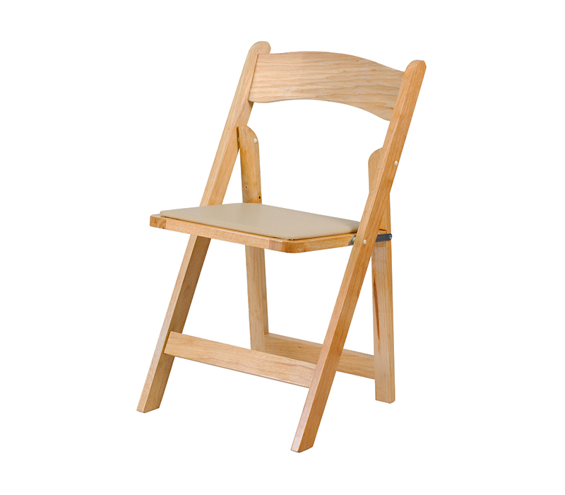 Frame: Constructed of solid hardwood. Seat: Sofa Foam Padded Seat with a washable vinyl locked mechanism. Our wood folding chair can be stocked over 30 chairs high. Custom color available.