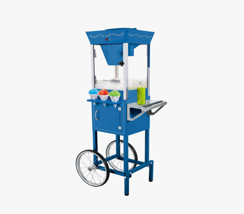 This snow cone machine with cart is nice looking, commercial grade, high efficency. Good for Parties.